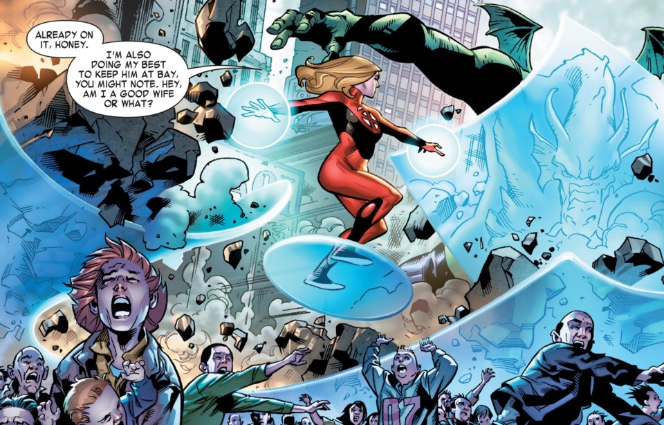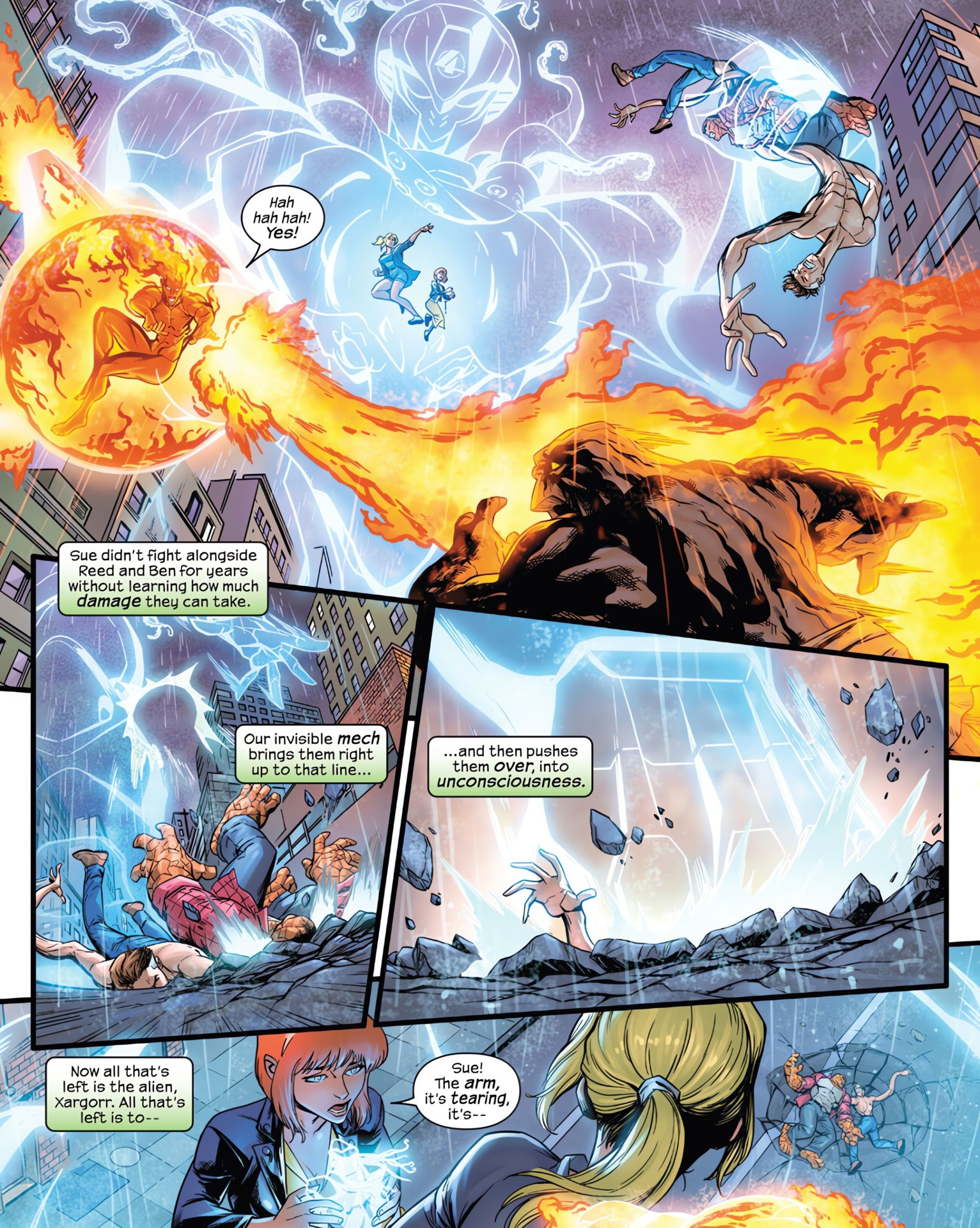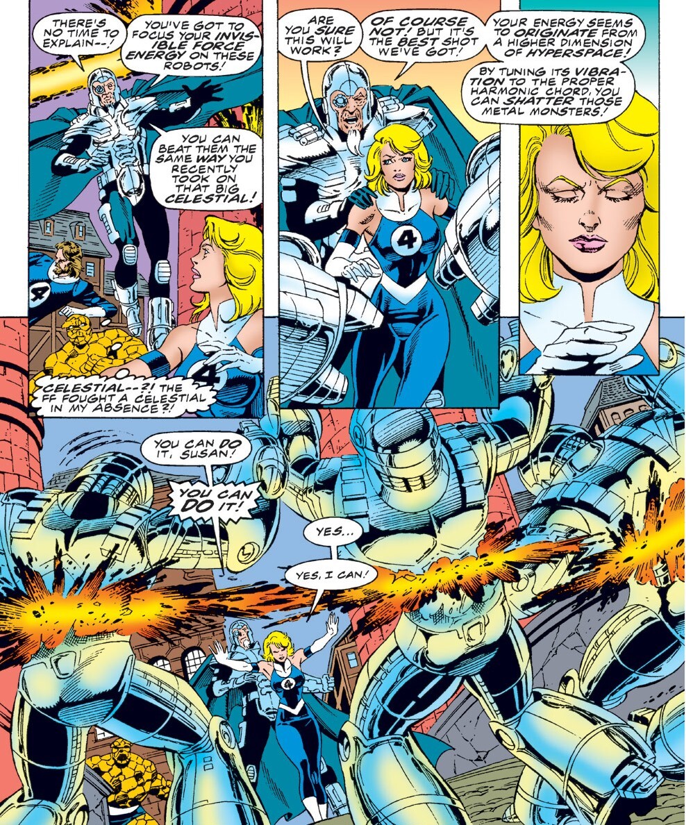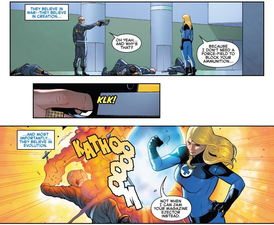 Sue Storm vs Mary Marvel (Low - Mid Diff): Base wise physically, she sits around town to city level in attack power but that barely matters when her High-Outer constructs and forcefields, which completely eclipse Mary’s stats across the board. Her power is explicitly stated to originate from the same realm as the Celestials, which explains why she can breach their armor and shield herself from their attacks. She has blocked blows from Green Scar Hulk while he's shown stalemating Sentry and fighting a Zom-possessed Doctor Strange, which lines up with her also enduring Sentry’s punches. She has pushed back Knull’s forces, tanked Wolverine’s adamantium claws, which have pierced Hulk, Thor and Thanos, and kept pace with Namor. She has trapped Gladiator, beaten She-Hulk, and pressured the Avengers, including both Hulk and Thor. Her forcefields has tanked hits from Mjolnir, pierced Galactus, restrained the Thing, hold off Fin Fang Foom, tanked hits from both the Thing and Johnny Storm, block attacks from Galactus, beams from Blaastar, energy outbursts of Norrin Radd and and Terrax combined, Ronan the Accuser's Universal Weapon and most notably, a full attack from an adult Franklin Richards and even contained his raw energy output as a child. With Franklin stated to be a threat to Multi-Eternity and can reshape the entirety of the Nexus of all Realities which exist inside the White Hot Room (3 Layers into High-Outer). She's broken through Doom's magical shield which I've previously stated could block attacks from Captain Britain, whose strong enough to tear the Omniverse asunder, and has also defeated Agatha Harkness, who herself can hold off Dormammu with Sue being able to harm him as well, consistent with her capable of staggering Mephisto in his realm, knocking out Shuma Gorath and casually dealt against a room full of mindless ones. In terms of versatility, she keeps up with fighters like Iron Fist, Doctor Doom, Namor, Sersi and even her own equal in direct physical combat. Sersi, who as an Eternal, has damaged Hercules and other Eternals, which further reinforces the scaling here. On top of all that, she possesses strong tactical intelligence and combat awareness, letting her leverage these advantages efficiently rather than relying on brute force alone, which is proven here, where she consistently performs a signature move of which includes suffocating her oponents to dura neg them, capable sealing magical spells which could be effective against Mary whose magic based, execute omnidirectional AoE attacks that could easily breached the speed gap, can amp herself with a pseudo armour around her physically or conjure up weapons to compete in a direct fight and telepathically overwhelm her and throw her around. Yeah, Sue is taking this no matter what, which should also justify why Ratio's take on Sue losing to Star Sapphire being wrong.