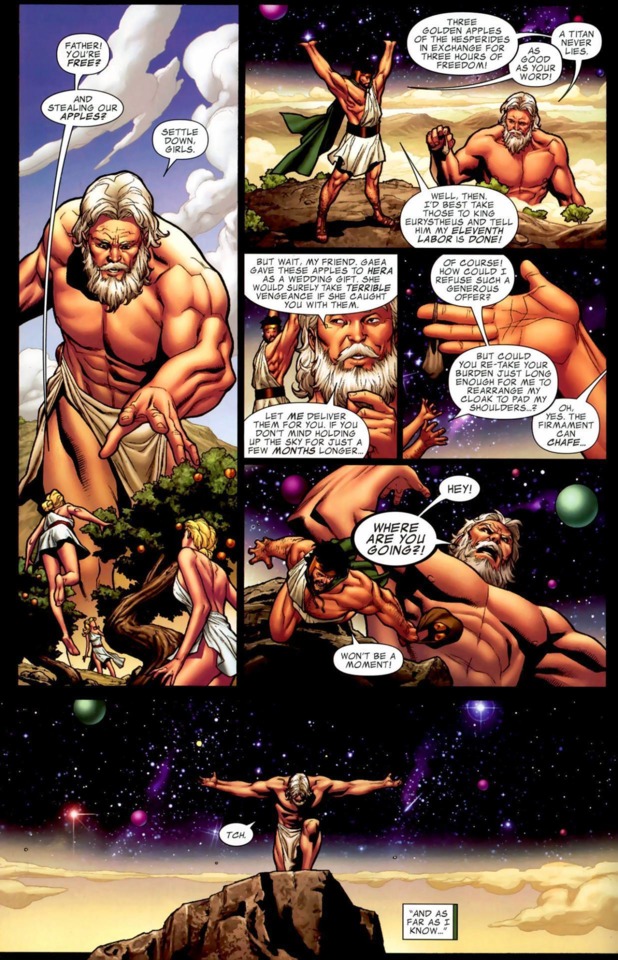 - Atlas bears the Heavens through a spiritual bond to the Axis Mundi, which manifests differently across pantheons with Yggdrasil being the Norse expression. Hercules once assumed this burden in Atlas’s stead.