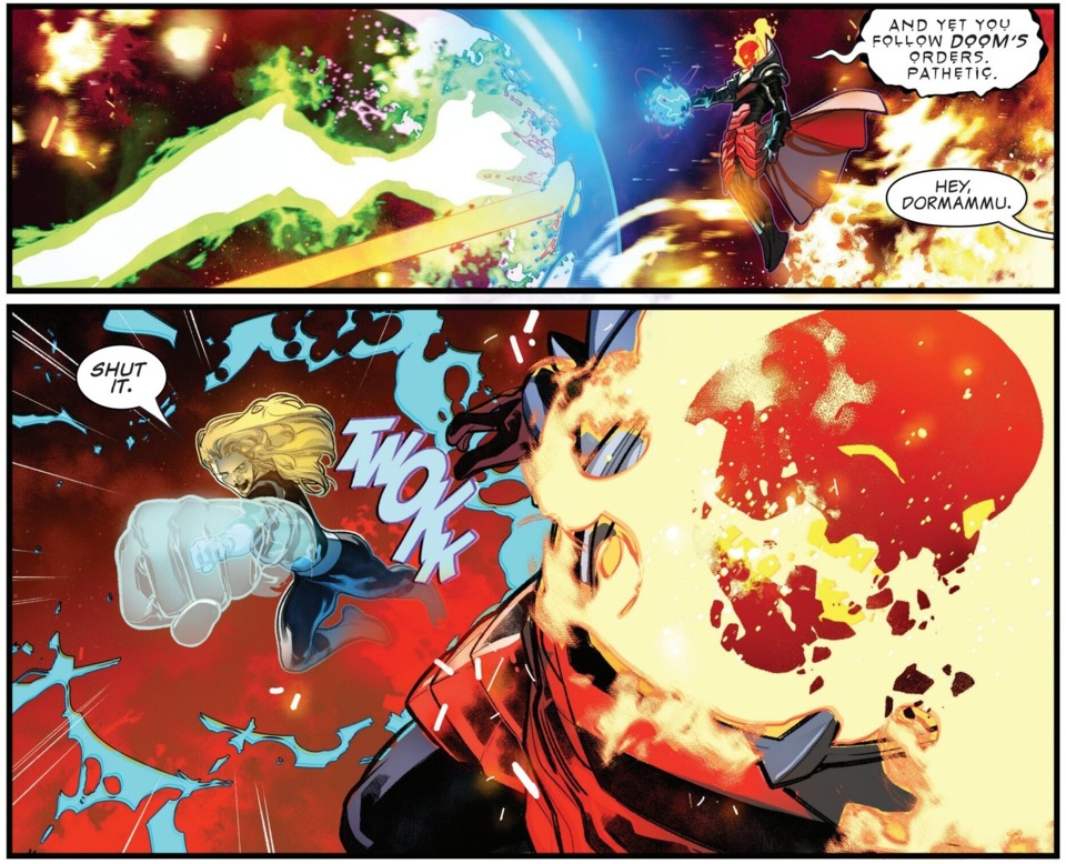 Amora the Enchantress vs Star Sapphire (Low Diff): Remember when Ratio tried to pull up Sue vs Sapphire nonsense and claimed she lost for “lacking physical stats”? Yeah, the situation here is totally different here. Amora can tank energy blasts from Seth, who once shook an entire plane of existence with Odin. She’s rivaled Hela and bounced back strong enough to assist Thor in fighting her. She’s taken attacks from Blaastar, hits from Ghost Rider and punches from Wonder Man, the same Wonder Man who can stagger Thor, stalemate Hulk, and beat up Atlas. And that’s before you factor in her magic, which is ridiculous. She’s strong enough to overwhelm Wanda, scorch Hela’s face, bypass Strange’s shields that can tank the violent impact of Dormammu and Eternity's battle, harm Nightmare (same one who imprisoned Eternity) and affect Robbie Reyes. Her defensive spells shrug off Loki’s magic and she can perform multiple haxes like soul, mind, and time manipulation with it. Not to mention her two standout feats which includes damaging Yggdrasil and doing it with Thor without abusing her spell! Okay, jokes aside, she now has Ullr’s Magical Fire in her possession, granting her basically running on plot permissions and full-on reality warping, high-end energy manipulation, and the usual grab-bag of “the story says you lose now” abilities.